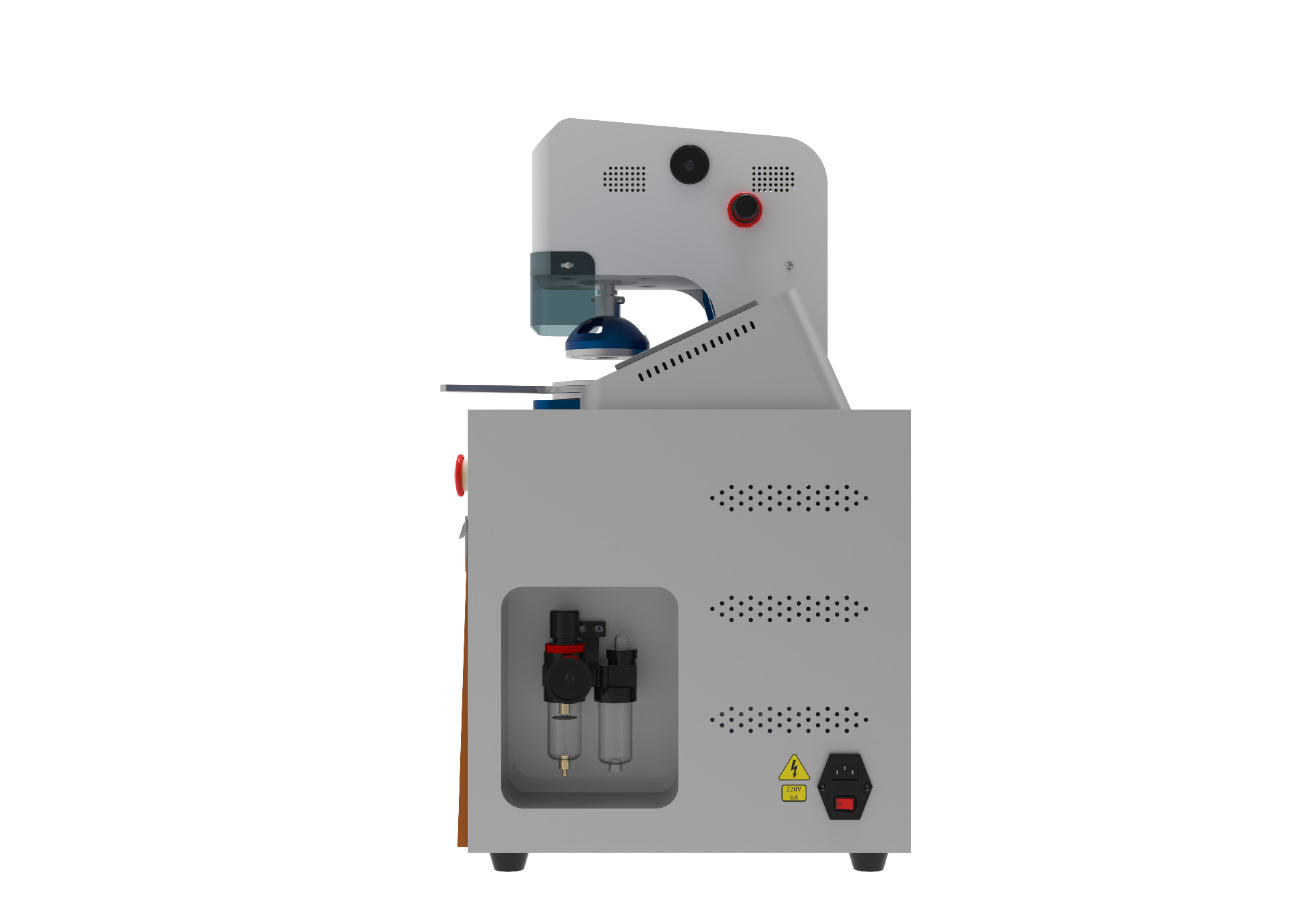 7、氣源過濾:自帶氣源水汽過濾裝置,水汽分離,防止氣缸積水、氣壓過低,損壞設(shè)備。