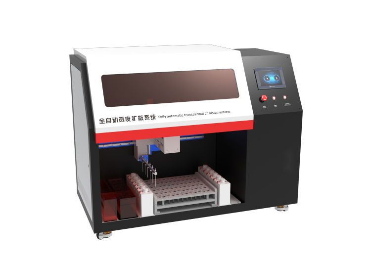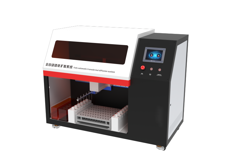 自動(dòng)透皮擴(kuò)散系統(tǒng),由擴(kuò)散主機(jī)和樣品收集器構(gòu)成。透皮擴(kuò)散主機(jī)包含兩組6+1個(gè)擴(kuò)散池,6個(gè)擴(kuò)散池用于擴(kuò)散實(shí)驗(yàn)(同時(shí)進(jìn)行12個(gè)樣品的滲透測(cè)試),第7個(gè)擴(kuò)散池用于監(jiān)控接收液溫度。滿足《美國(guó)藥典》要求,是一種可靠、重復(fù)性好的半固體劑型釋放測(cè)定的方法。主要用于軟膏、硬膏、涂劑、膜劑、氣霧劑等制劑的藥物透皮釋放試驗(yàn),通過(guò)經(jīng)皮膚吸收的模型研究藥物透過(guò)皮膚的效率。