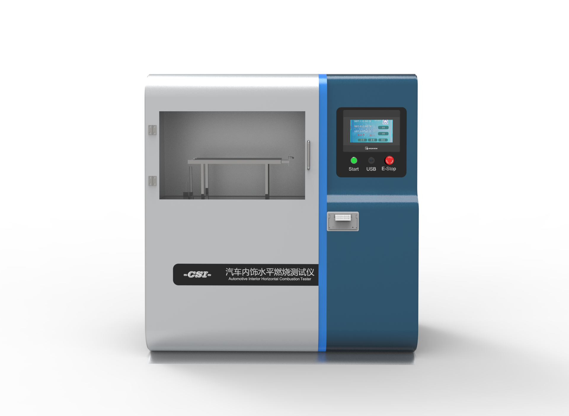 a.燃燒箱體:不銹鋼材料,拉絲處理;裝有地腳使氣體流通順暢;前面有大面積耐熱玻璃構(gòu)成,便于試驗現(xiàn)象的觀察;上側(cè)開設(shè)排氣窗;頂蓋可以打開。