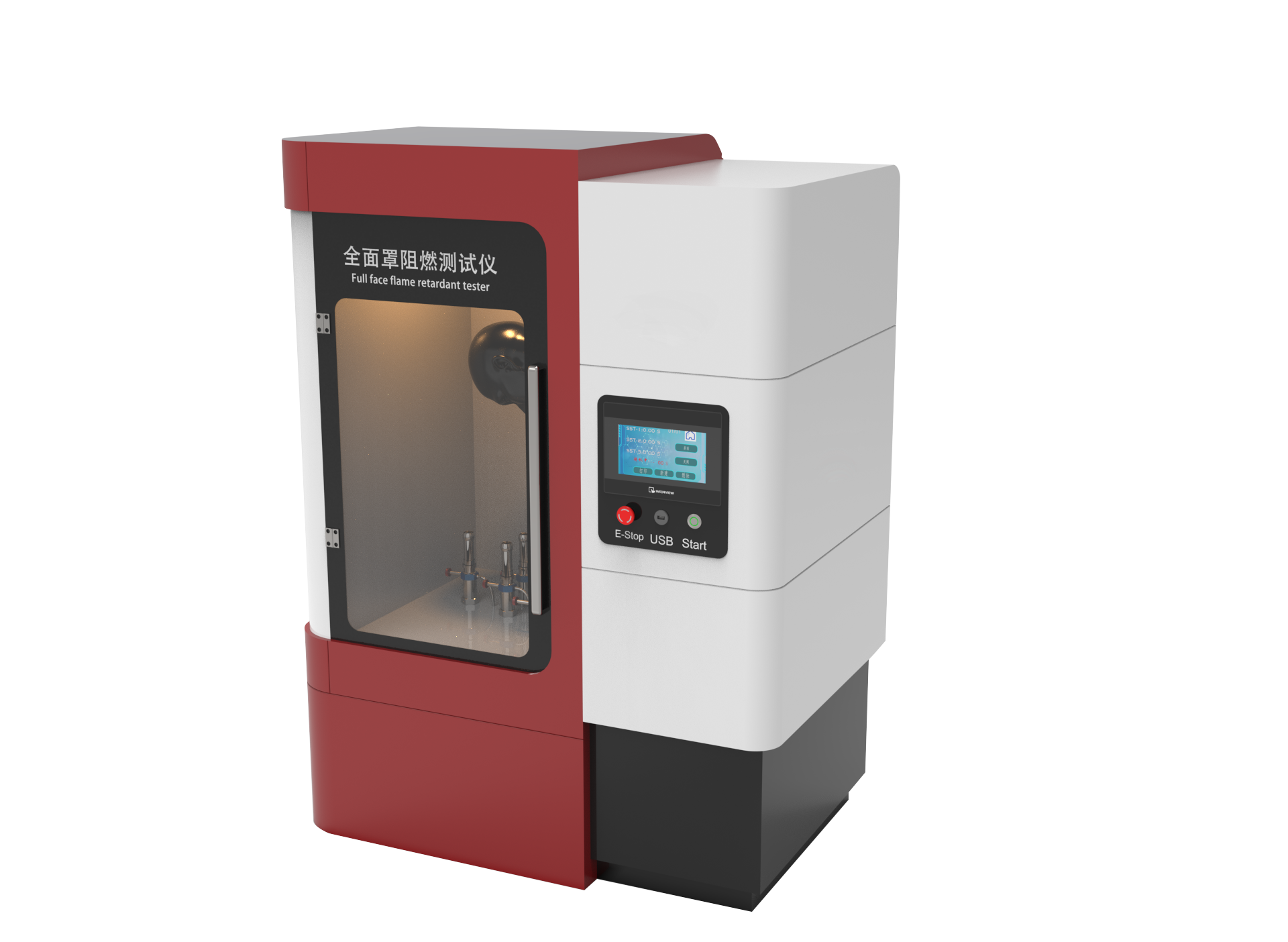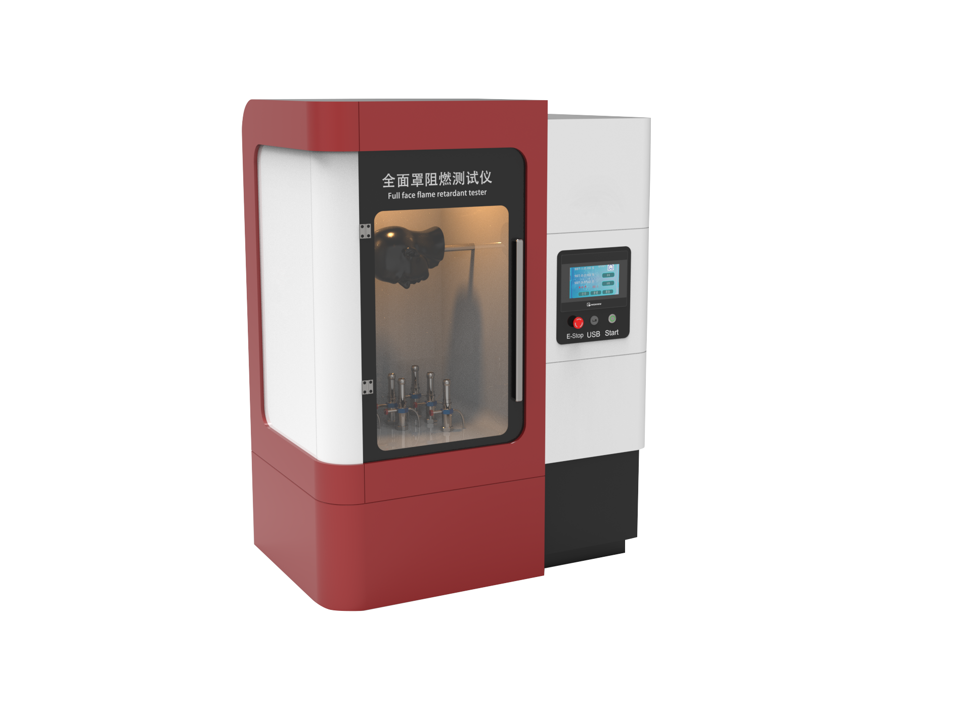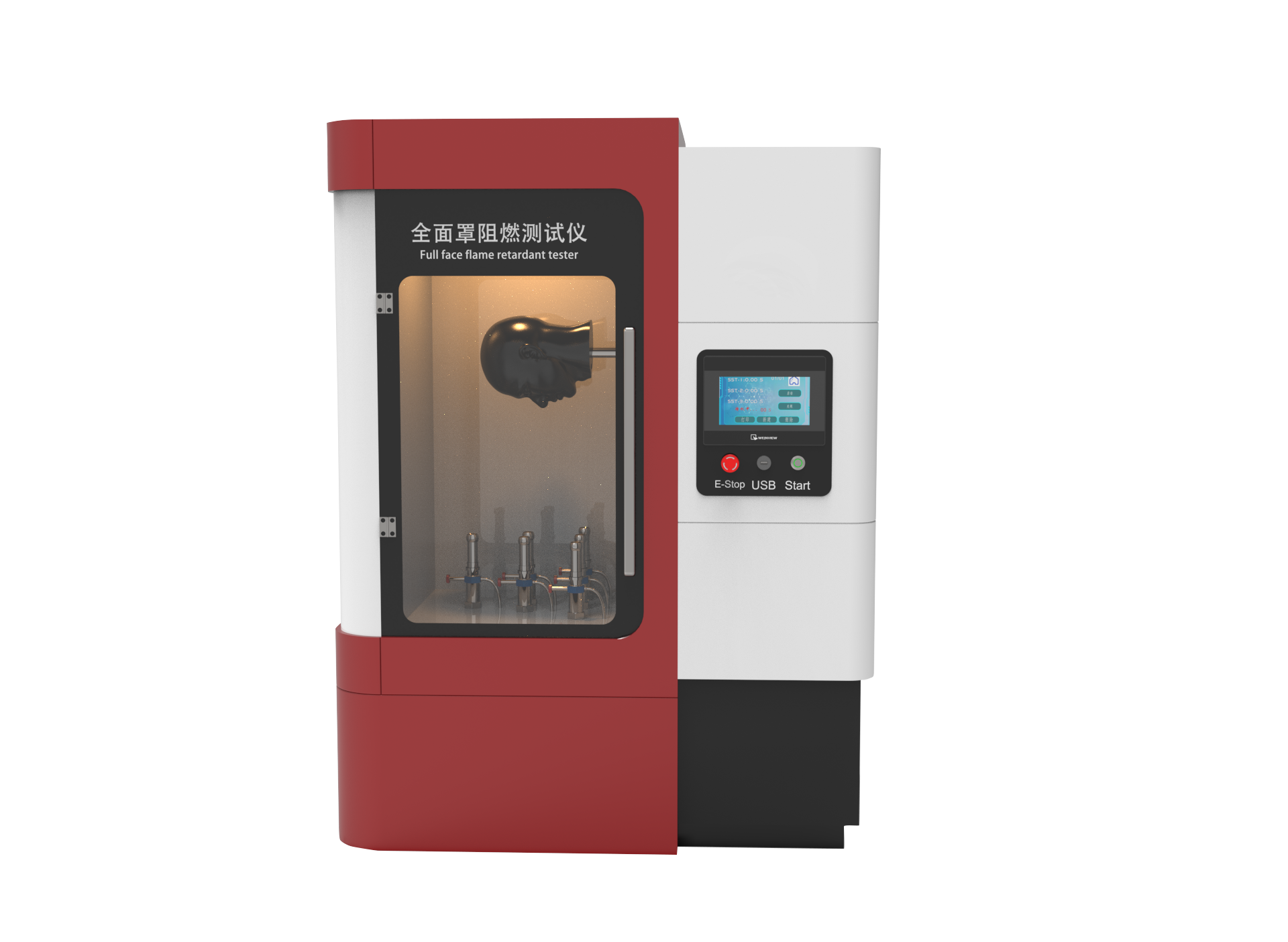 1,全面罩夾具為金屬人體頭模,能夠充分模擬呼吸器的實際使用狀態(tài)燃燒器火焰高度可調(diào);