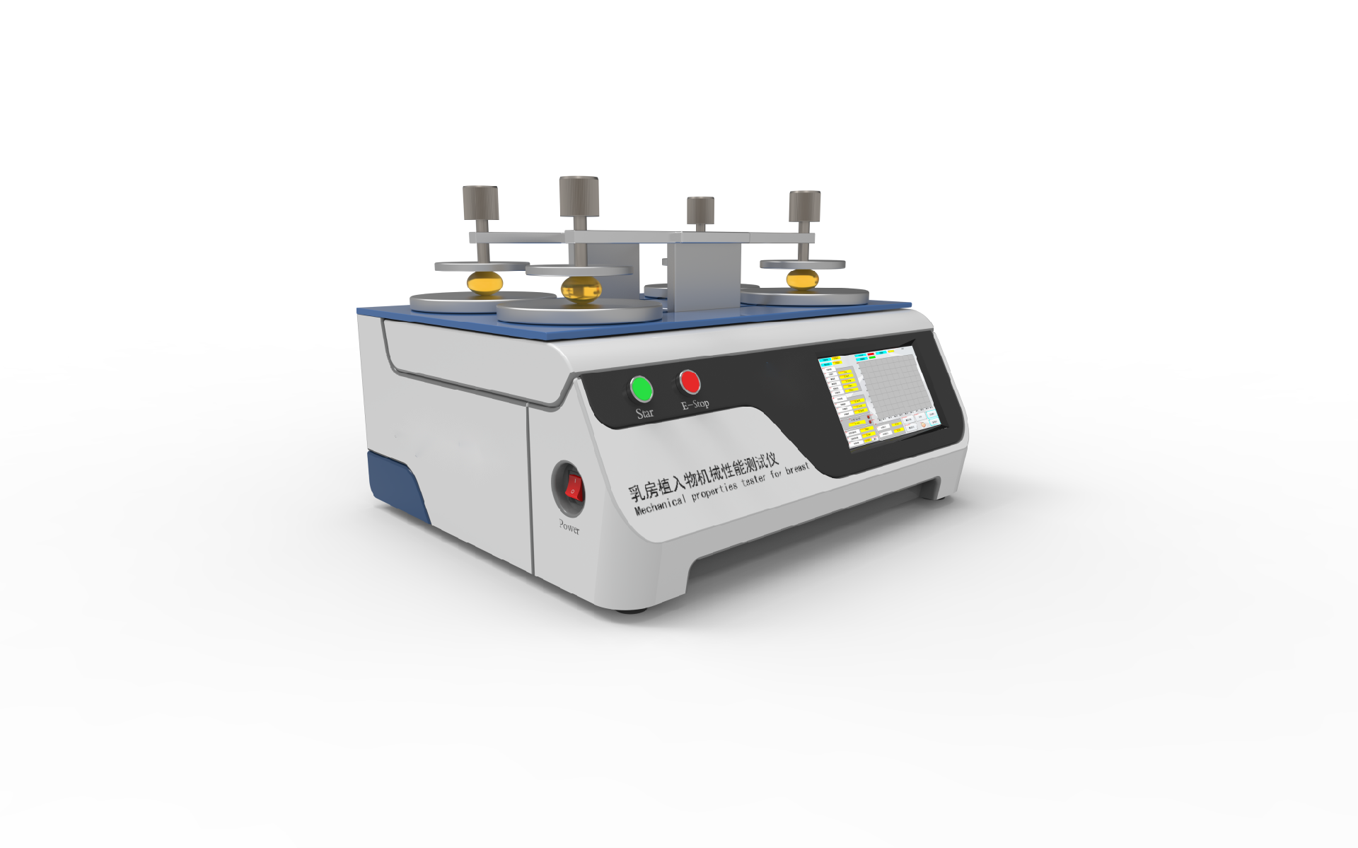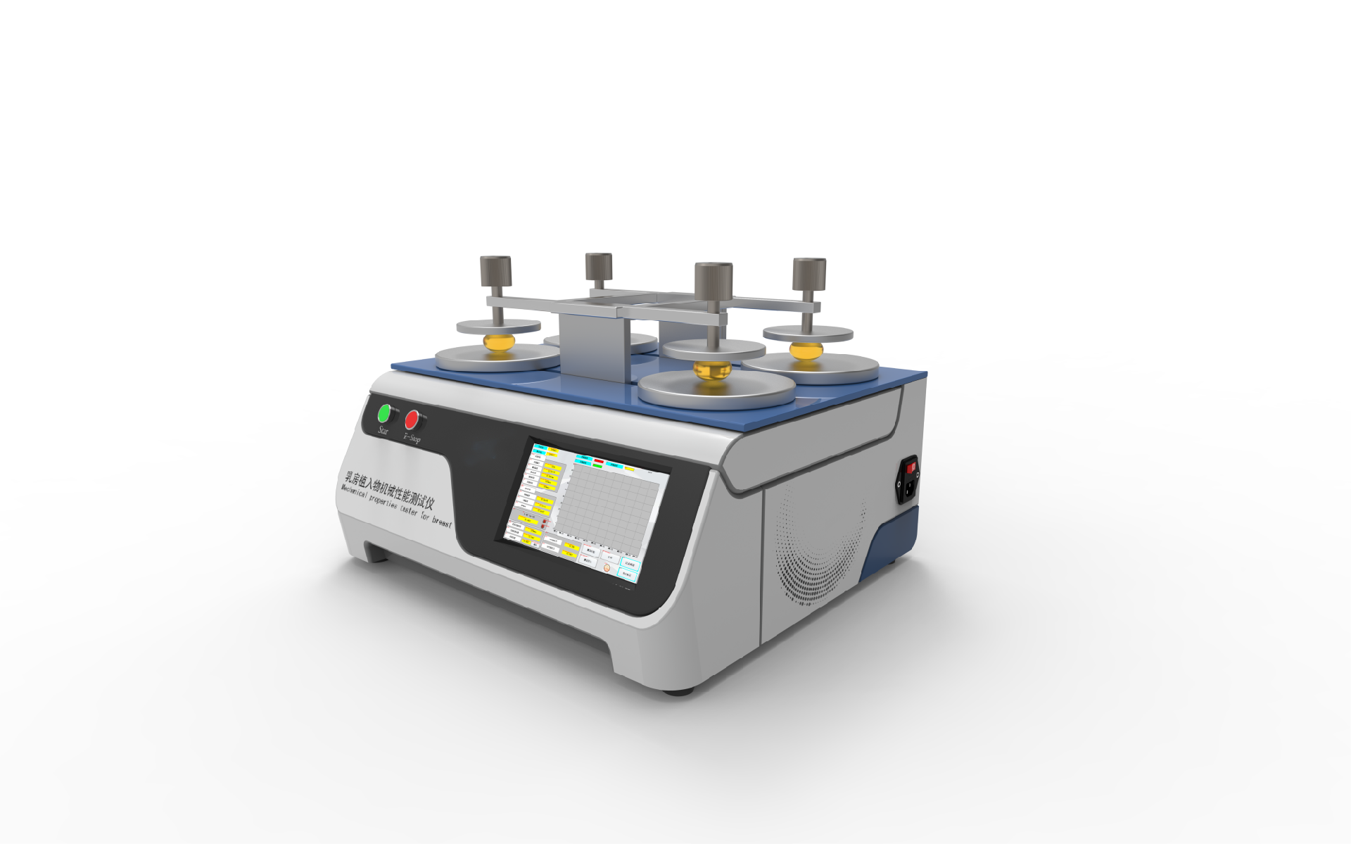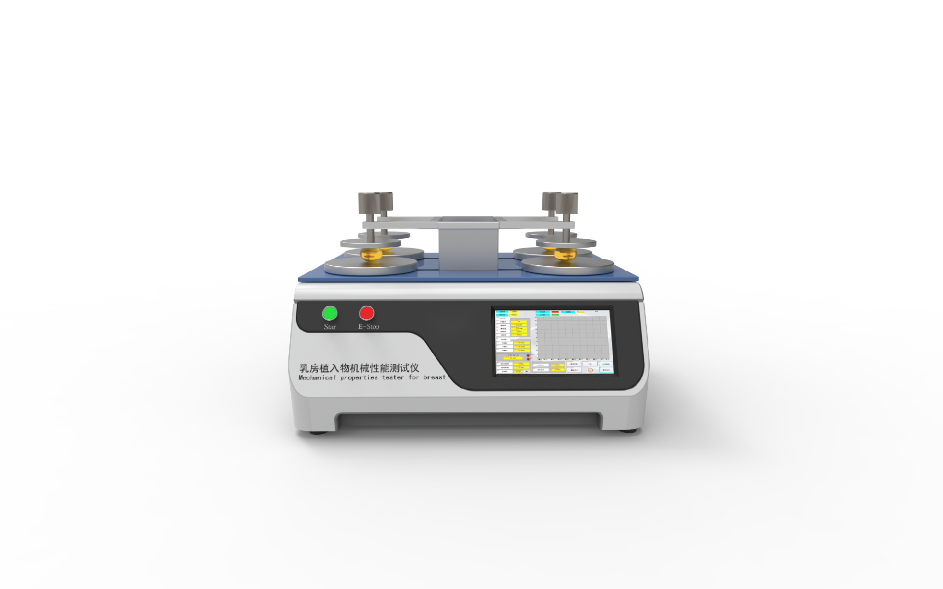 乳房植入物機械性能測試儀的工作原理通?;诹W測試原理。它通常包括以下幾個關鍵組成部分:
