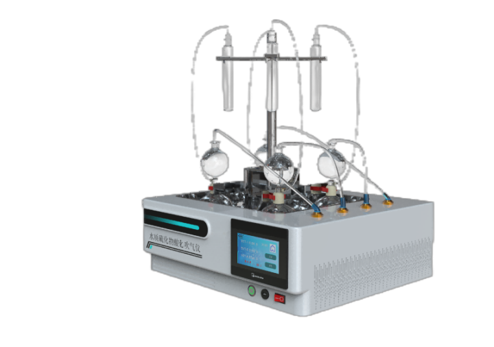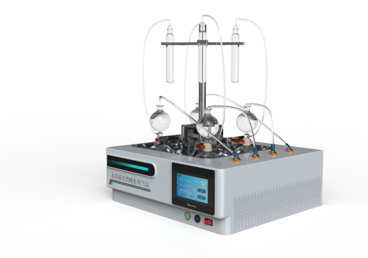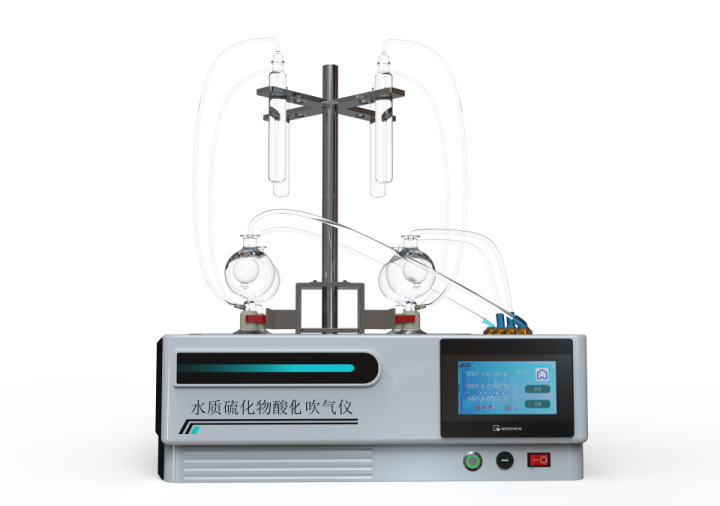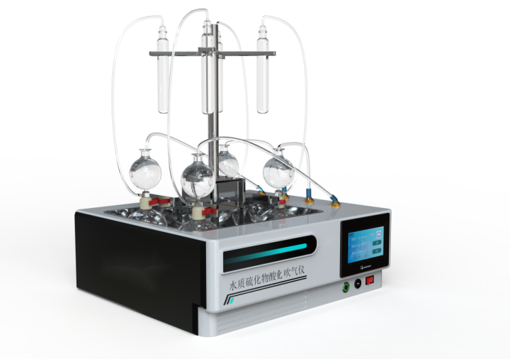 水樣中的硫化物經(jīng)酸化,生成的硫化氫隨載氣(氮氣) 進入吸收瓶/吸收顯色管中被吸收溶液 (乙酸鋅-乙酸鈉溶液或2%氫氧化鈉溶液)吸收選擇相應的分析方法對吸收瓶/吸收顯色管中吸收的硫離子進行分析測定。水質(zhì)硫化物酸化吹氣儀根據(jù)2022年最新國標水質(zhì)硫化物的測定-亞甲基藍分光光度法(典量法)標準開發(fā)生產(chǎn)的。水質(zhì)硫化物測定的樣品前處理需要。