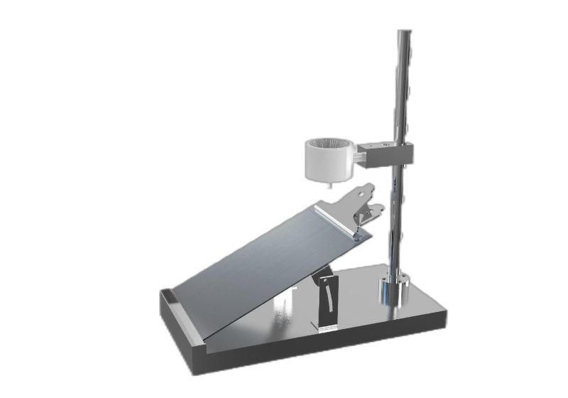 用于非織造布液體流失性能的測(cè)定。在被測(cè)非織造布下放置一塊標(biāo)準(zhǔn)吸收媒介,將組合試樣置于一塊傾斜的墊板上,測(cè)量當(dāng)一特定量的人工尿液向下流到組合試樣上,液體穿透非織造布被標(biāo)準(zhǔn)吸收媒介吸收,通過稱量標(biāo)準(zhǔn)吸收媒介試驗(yàn)前后重量的變化得出非織造布試樣的液體流失性能。