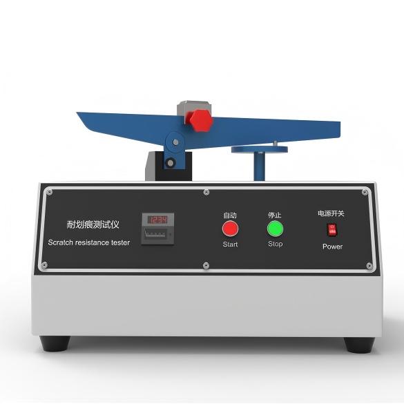 將試樣放置于厚度控制裝置凹槽內(nèi),調(diào)節(jié)螺母位置。將試樣安裝在可旋轉(zhuǎn)圓形平臺上,并用壓塊及螺母固定。將刮擦頭安裝與秤桿中部對應(yīng)凹槽內(nèi)。旋轉(zhuǎn)平衡桿,使刮擦頭頭部與試樣剛好接觸。啟動儀器,圓盤運(yùn)動,刮擦頭在試樣表面留下刮痕。