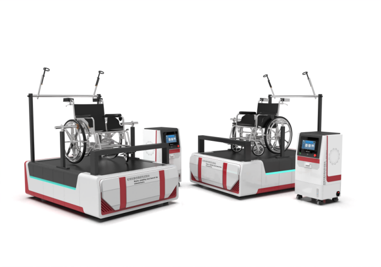 8、配備限制傾翻程度的裝置:能夠用來限制輪椅車在測試平臺上傾斜程度的裝置,此裝置不影響輪椅車的穩(wěn)定性,僅限制輪椅車過度傾斜或變形。