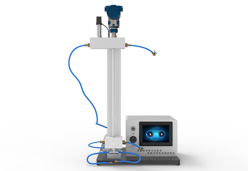 1)按圖所示將接頭總成裝人試驗(yàn)裝置中,保持測(cè)試的液體壓力。記錄量筒的液面高度。