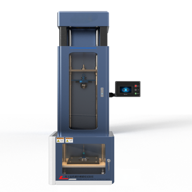 將定量的被測藥劑壓制在試樣孟內(nèi),用一定質(zhì)量的鋼錘從不同高度自由落下撞擊擊柱,擊柱撞擊試樣盂內(nèi)的藥劑,觀察其發(fā)火情況,用統(tǒng)計(jì)分析方法計(jì)算其50%發(fā)火高度和標(biāo)準(zhǔn)偏差,以此評價(jià)被測藥劑的機(jī)械撞擊感度。
