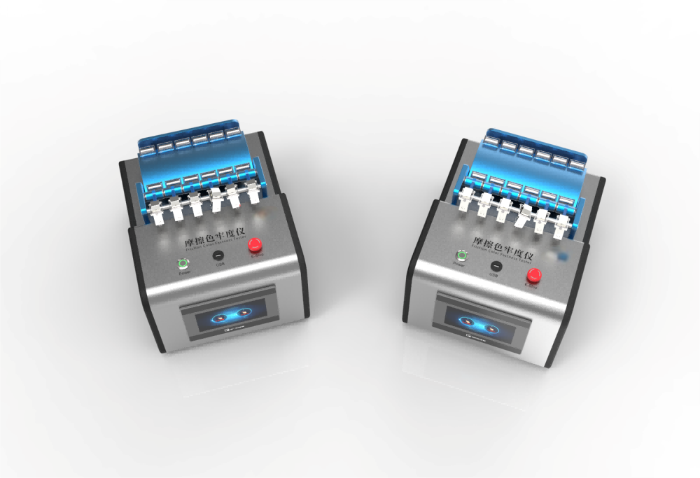 在摩擦色牢度的測試中:將約220*30mm的試樣安裝在試樣臺(tái)上,約50*50mm的摩擦用白棉布(干態(tài)或濕態(tài))安裝在各個(gè)摩擦頭的前端,在2N的負(fù)重下,以每分鐘30往復(fù)的速度在120mm的距離間做100往復(fù)運(yùn)動(dòng),然后將白棉布取下,與評(píng)定沾色用灰色樣卡相比較進(jìn)行評(píng)定。