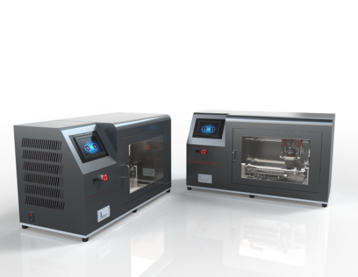 測(cè)試前切刀應(yīng)于試樣垂直,試驗(yàn)后,試樣全自動(dòng)轉(zhuǎn)動(dòng)角度 90°,并向前移動(dòng)25mm<