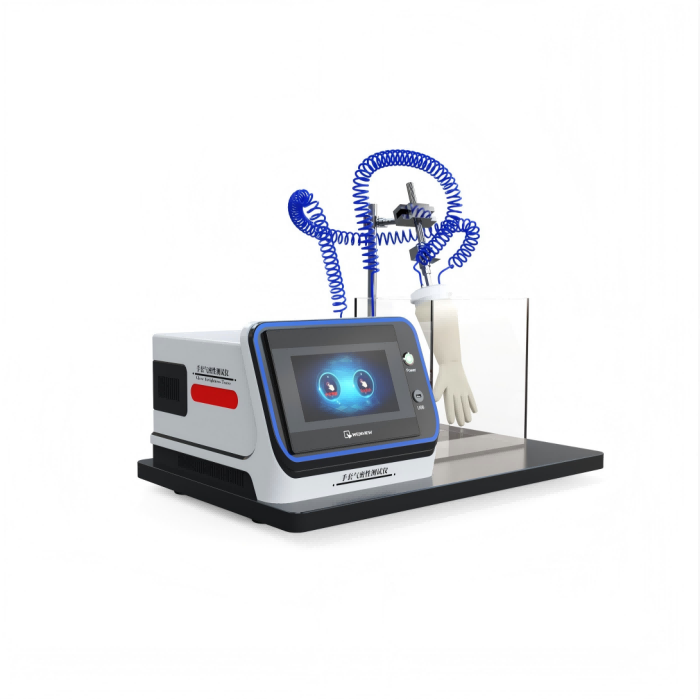 設(shè)定充氣參數(shù)后啟動(dòng),手套內(nèi)的充氣壓力應(yīng)保持2min,波動(dòng)不超過(guò)充氣壓力的±10%,在觀察可能出現(xiàn)的氣泡時(shí),可延長(zhǎng)一定測(cè)試時(shí)間,但不應(yīng)超過(guò)30s。;