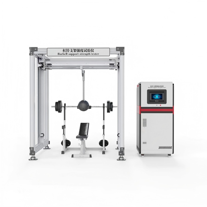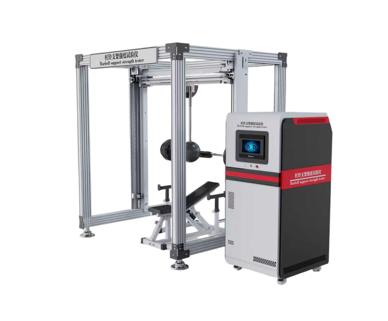 杠鈴支架強(qiáng)度試驗(yàn)儀是用于檢測(cè)杠鈴支架承載能力和結(jié)構(gòu)強(qiáng)度的設(shè)備,常見(jiàn)的有萬(wàn)能材料試驗(yàn)機(jī)和專門(mén)的健身器材靜力加載實(shí)驗(yàn)機(jī)等PLC控制系統(tǒng),支持自定義測(cè)試標(biāo)準(zhǔn);