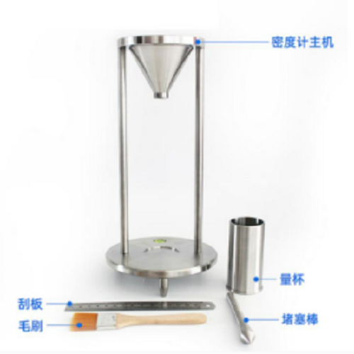 原理:粉塵從漏斗口在一定高度自由落下充滿量杯;測定松裝狀態(tài)下量杯內(nèi)單位體積粉塵的質(zhì)量,即粉塵堆積密度。