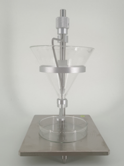 4. 調(diào)節(jié)玻璃漏斗下出料口與底板100mm的高度值;