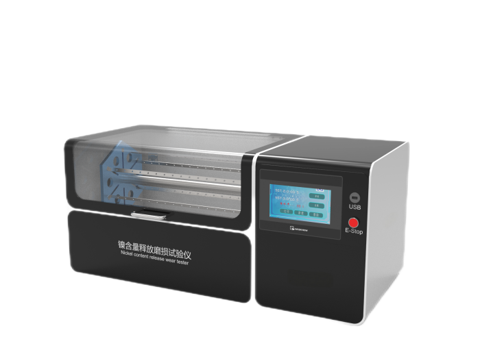 鎳釋放磨損儀是利用一種加快磨損的方法,為檢測(cè)金屬含量提取檢測(cè)物質(zhì)的一種儀器,該方法用于檢測(cè)直接接觸皮膚或延伸接觸皮膚涂層物鎳的釋出,還可以根據(jù)本方法延伸檢測(cè)其他金屬物質(zhì)。