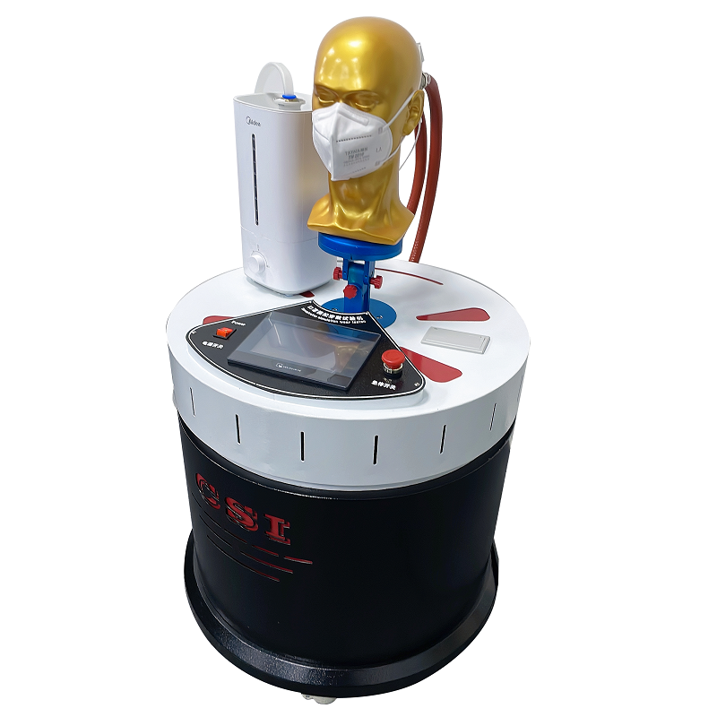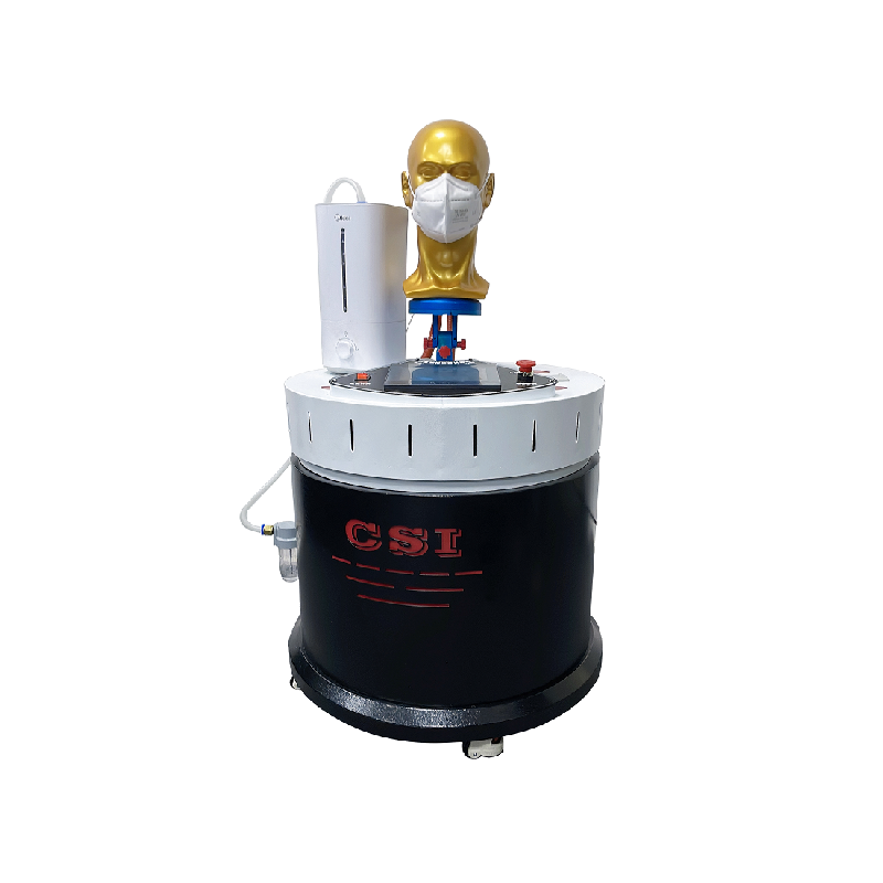 模擬穿戴預處理機,由呼吸模擬器、試驗頭模、飽和水蒸氣發(fā)生裝置、溫度控制裝置、 流量計等組成,可控制呼吸模擬器以25次/分鐘,每次2L的呼吸量運行??煽刂祁^模嘴巴附近飽和水蒸氣的溫度為(37+2) °。開啟預處理裝置,使呼吸裝置及飽和水蒸氣發(fā)生裝置進入工作狀態(tài),直到達到穩(wěn)定。將呼氣器以氣密的方式佩戴在匹配的試驗頭模上,測試20分鐘左右。從呼吸器上取下顆粒物過濾材料,然后重新安裝上去,繼續(xù)重復測試10次。