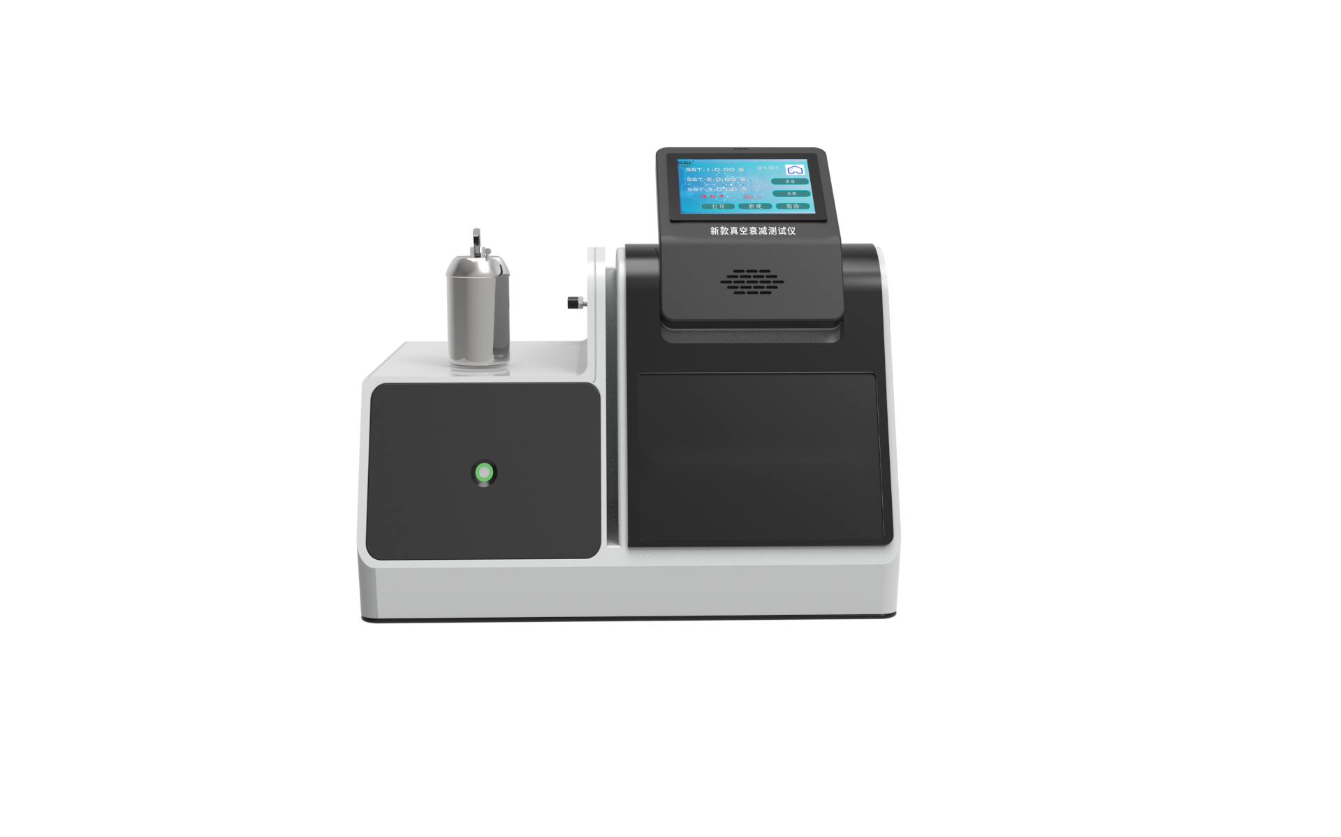 采用7寸威綸通單彩液晶觸摸顯示屏,中文菜單顯示。泄漏試驗(yàn)所用的壓力并在測(cè)試過程中顯示所測(cè)壓力,對(duì)測(cè)試所需時(shí)間,并可由嵌入式微型熱敏打印機(jī)打印出測(cè)試結(jié)果。